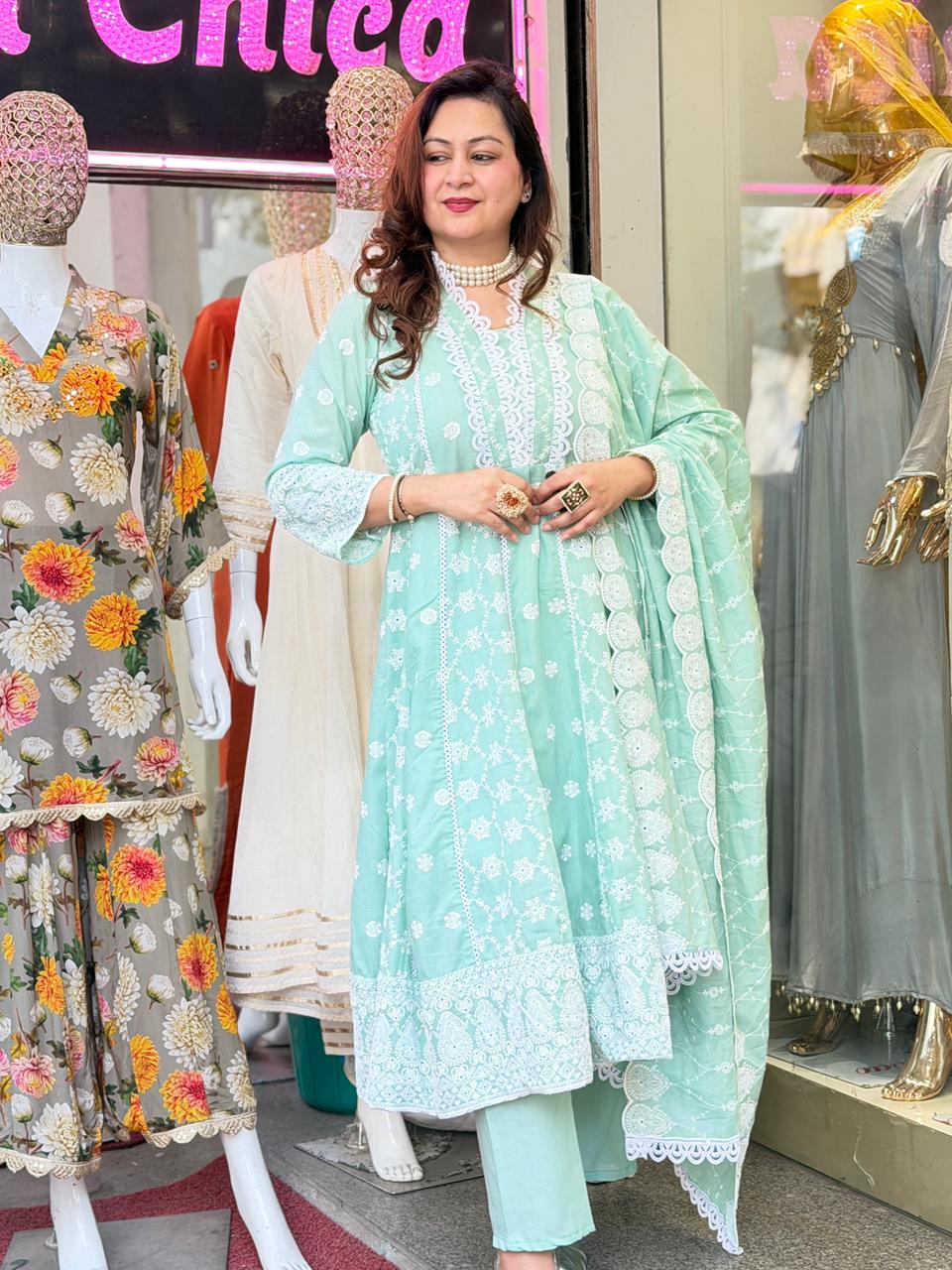 Elegant Chikankari Embroidered Suit Set with Dupatta