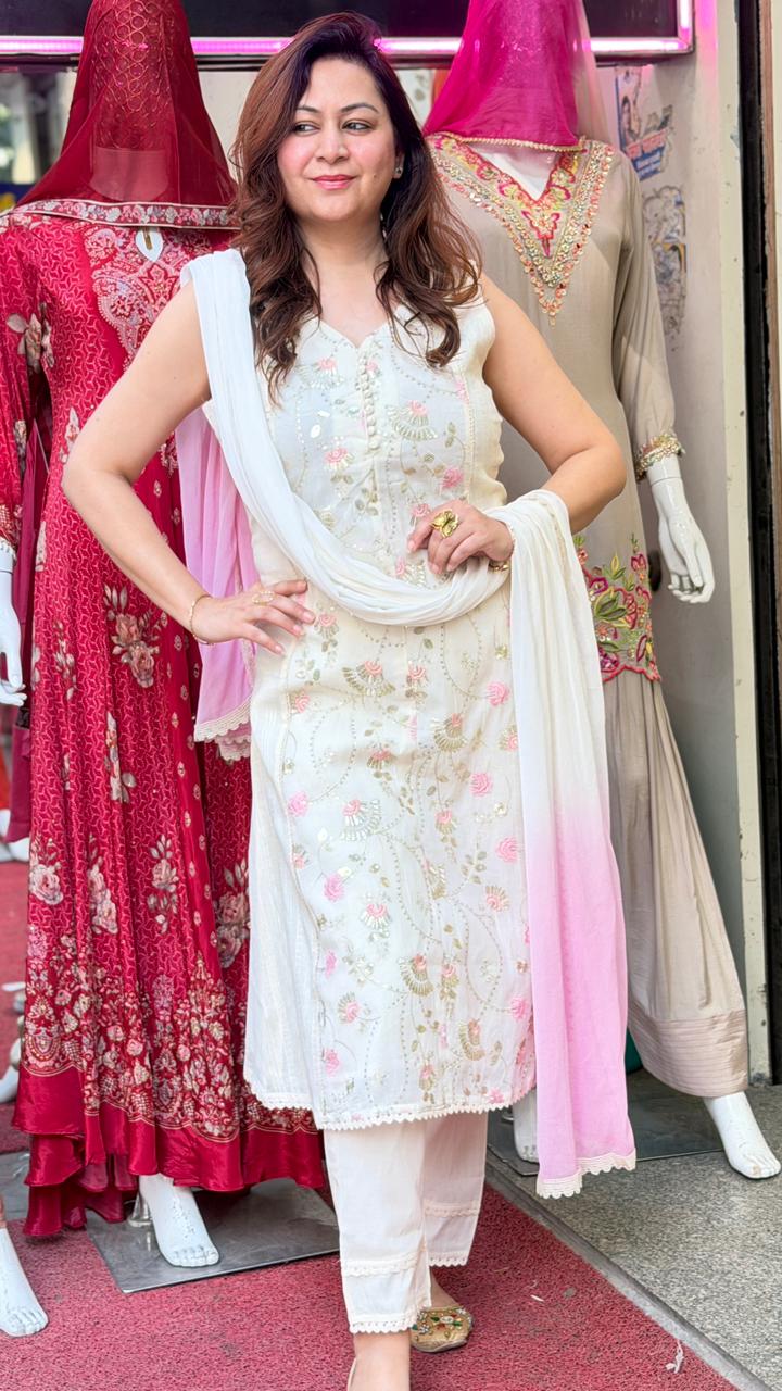 Embrace soft elegance with this ivory pastel embroidered kurta set, designed to bring graceful charm...