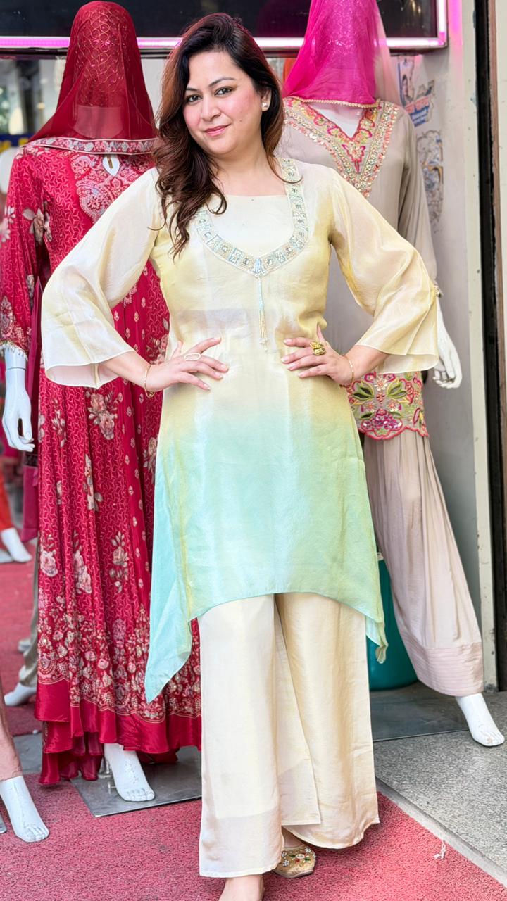 Elevate your ethnic wardrobe with this dreamy pastel ombre kurta set, designed for effortless elegance...