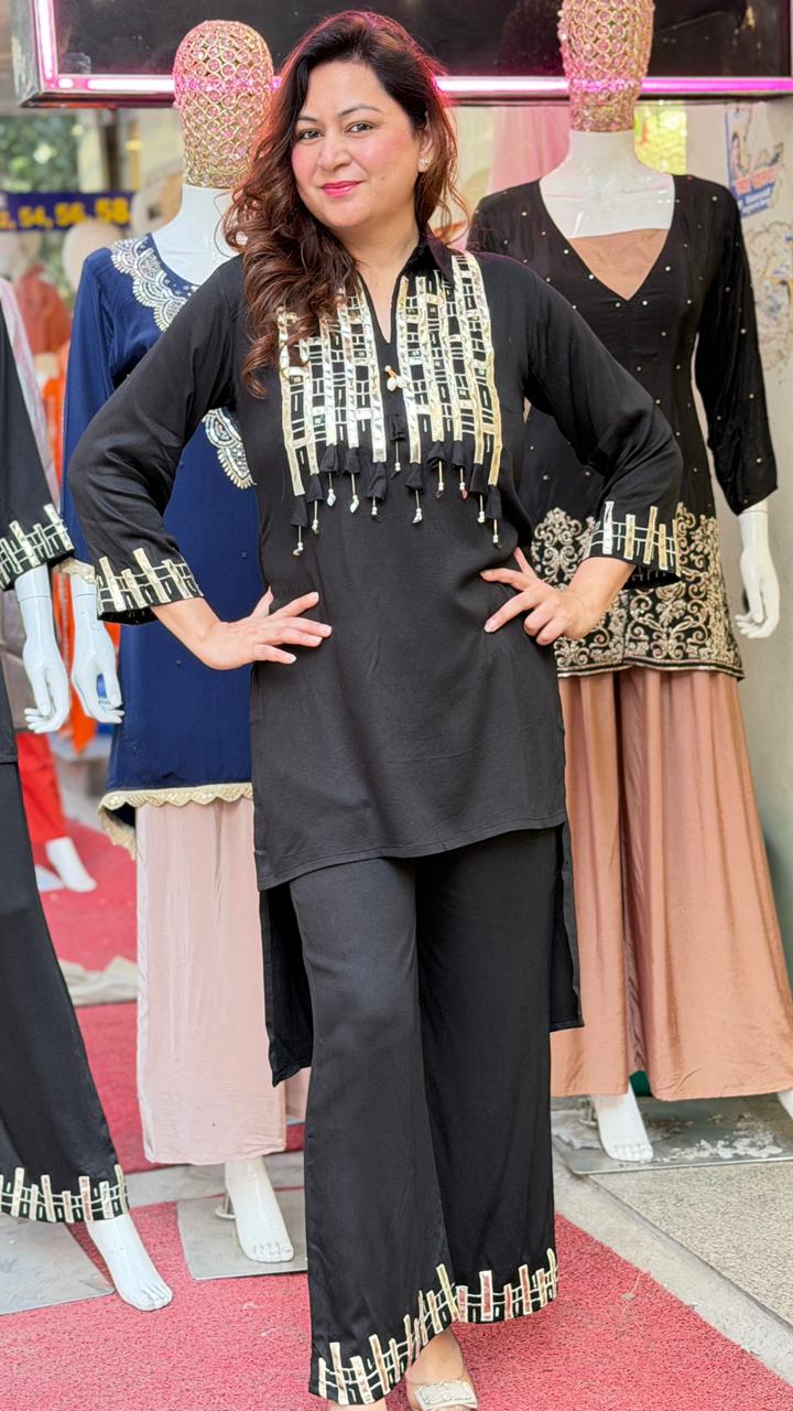 Black & Gold Embroidered Short Kurta with Palazzo Co-Ord Set
