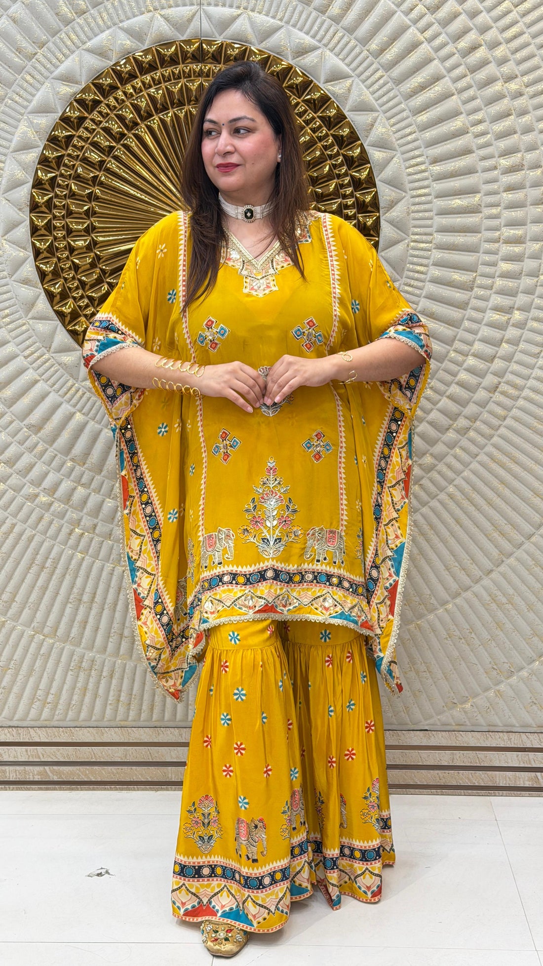 Bright, celebratory, and rooted in tradition.The Haldi Rani Printed Kaftan Sharara Set is designed to...