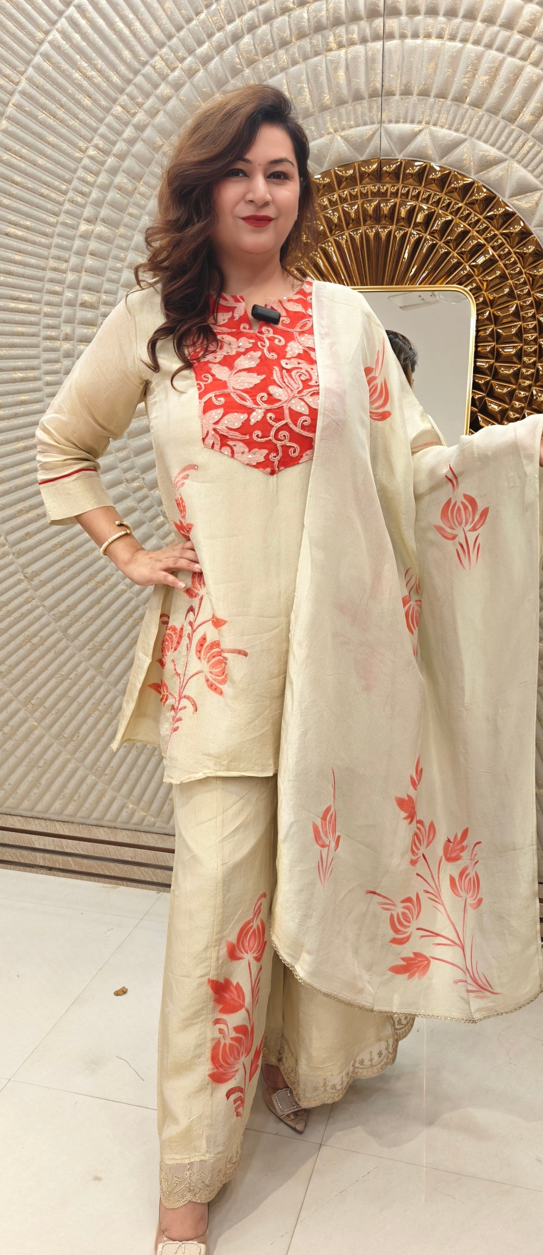 Turn heads with our Red Mirror C-Cut Kurta Set, a bold statement piece in rich...