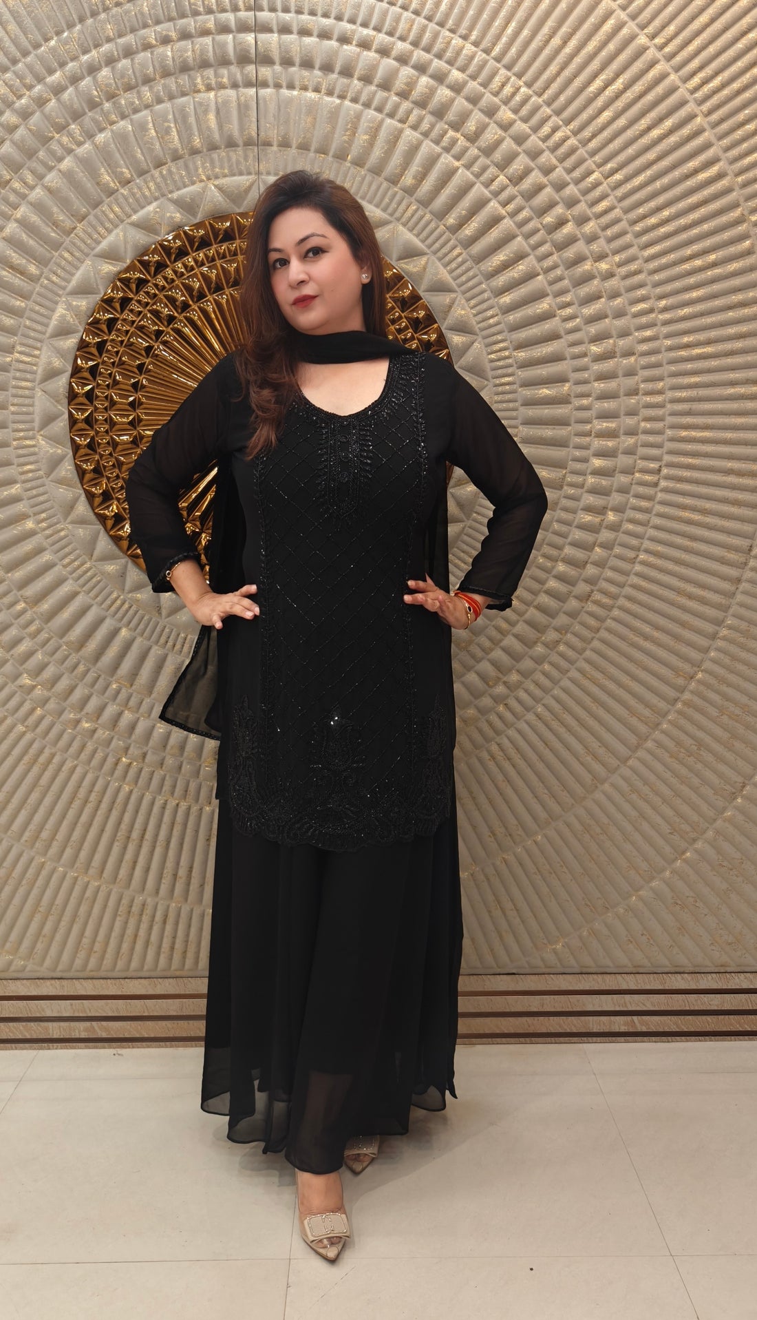 Embrace timeless elegance with our Black Georgette Embroidered Coord Set, crafted in a deep black...