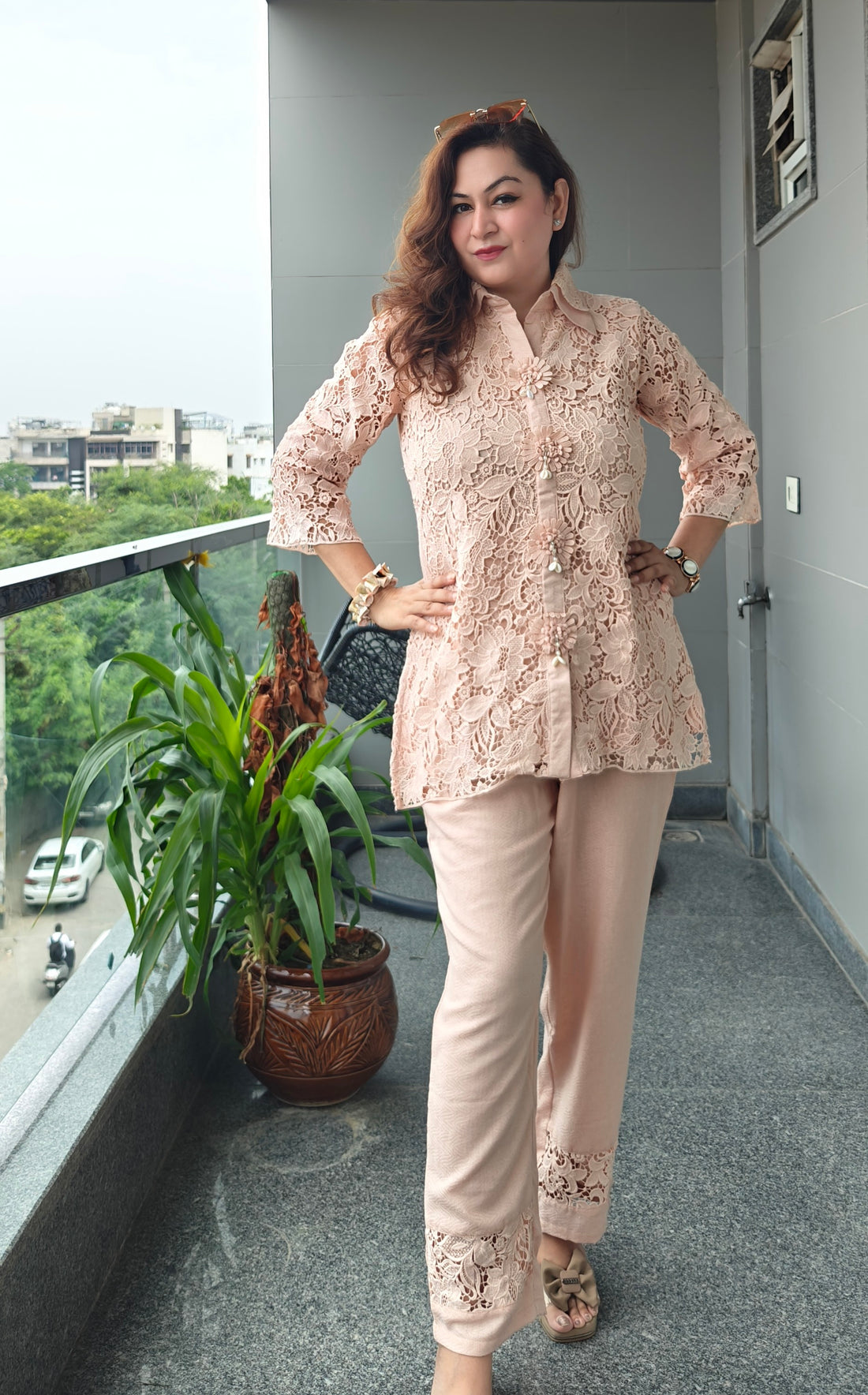 Breathe elegance into every occasion with ourย Croshiya Coord Set. Crafted with intricate daisy-pattern crochet lace...