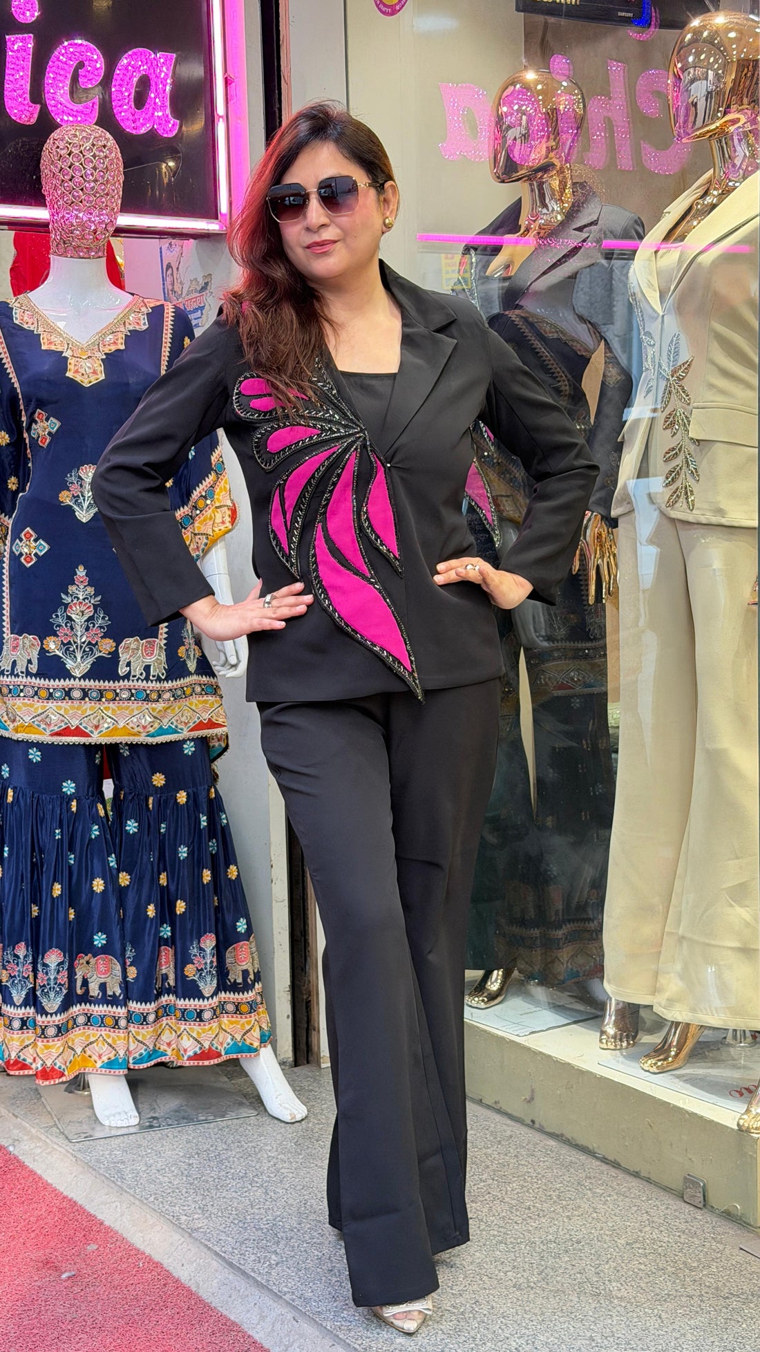 Turn heads without trying too hard.The Midnight Bloom Embellished Co-Ord Set is where power dressing...
