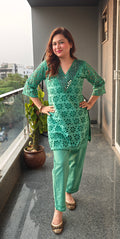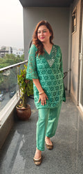 Paired with matching straight-fit trousers, this set is a perfect balance of comfort and charm. Whether you're heading to a brunch, a casual gathering, or simply dressing up your day, this coord set promises to keep you looking radiant.