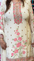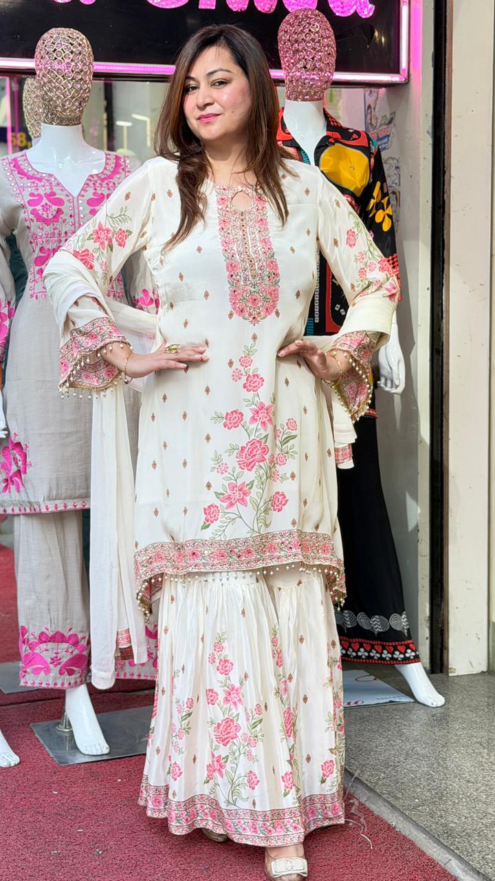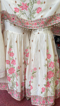 Ivory Pink Floral Embroidered Kurta Sharara Set with Dupatta