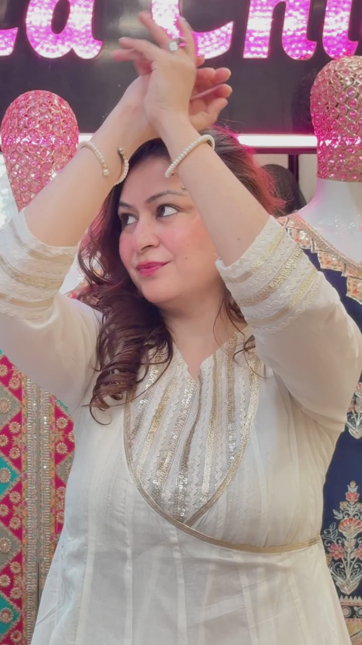 The Ivory Suvarna Anarkali Set with Dupatta is crafted for women who love grace, tradition, and effortless sophistication.