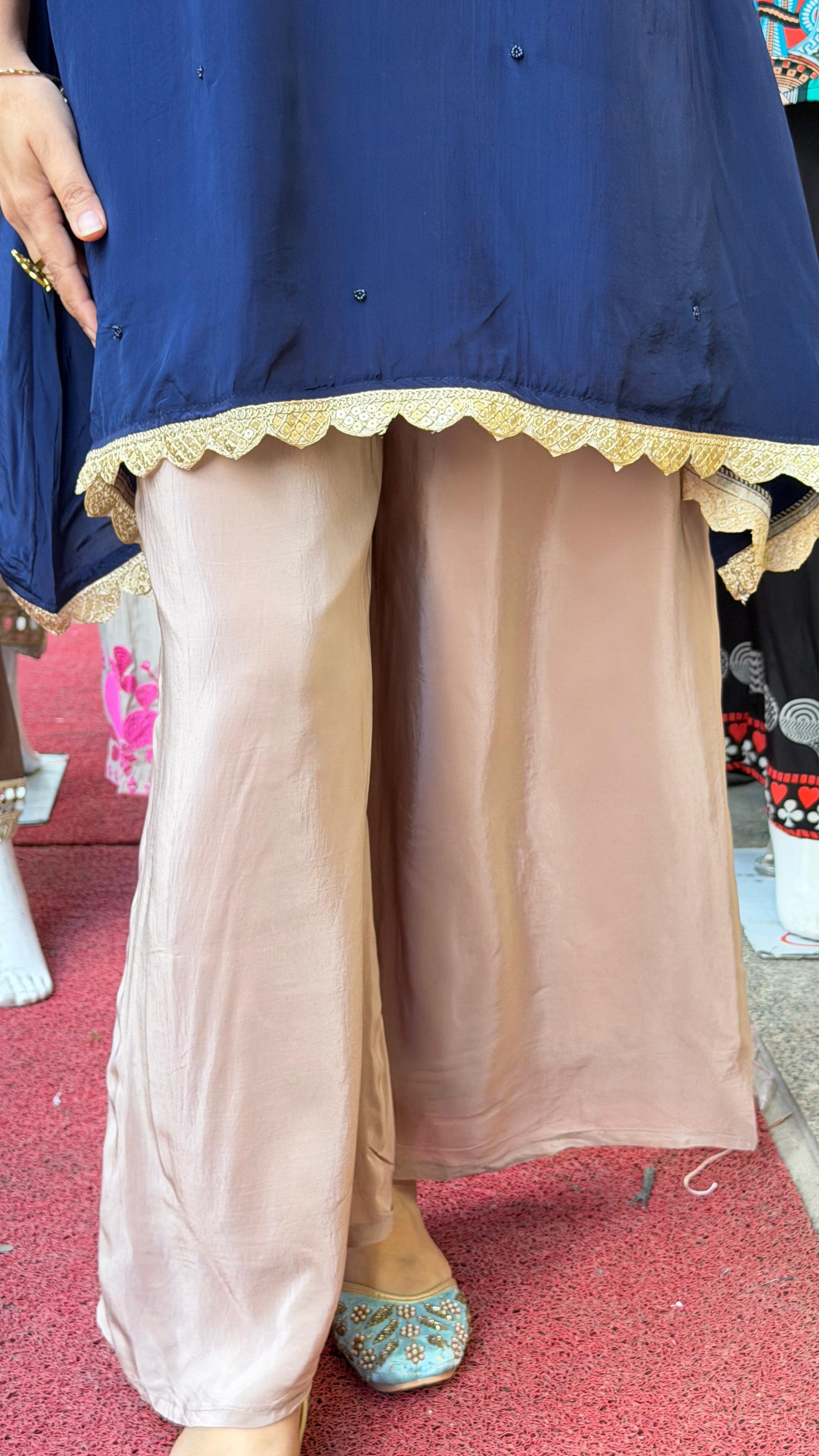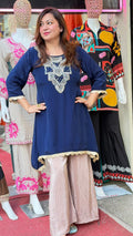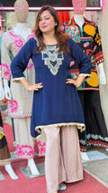 Make a refined style statement with this midnight blue embroidered kurta coord set that blends minimal elegance with festive detailing.