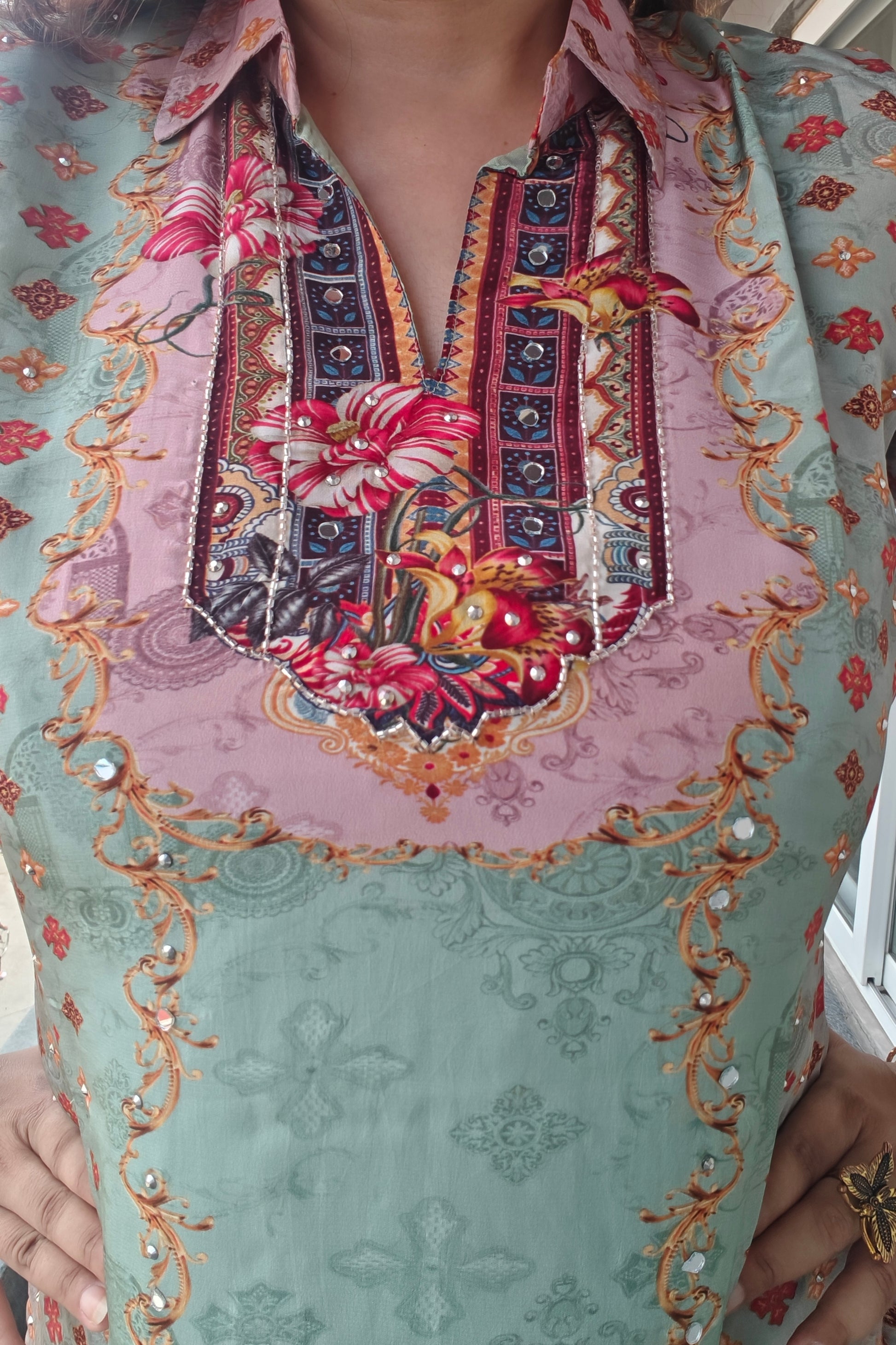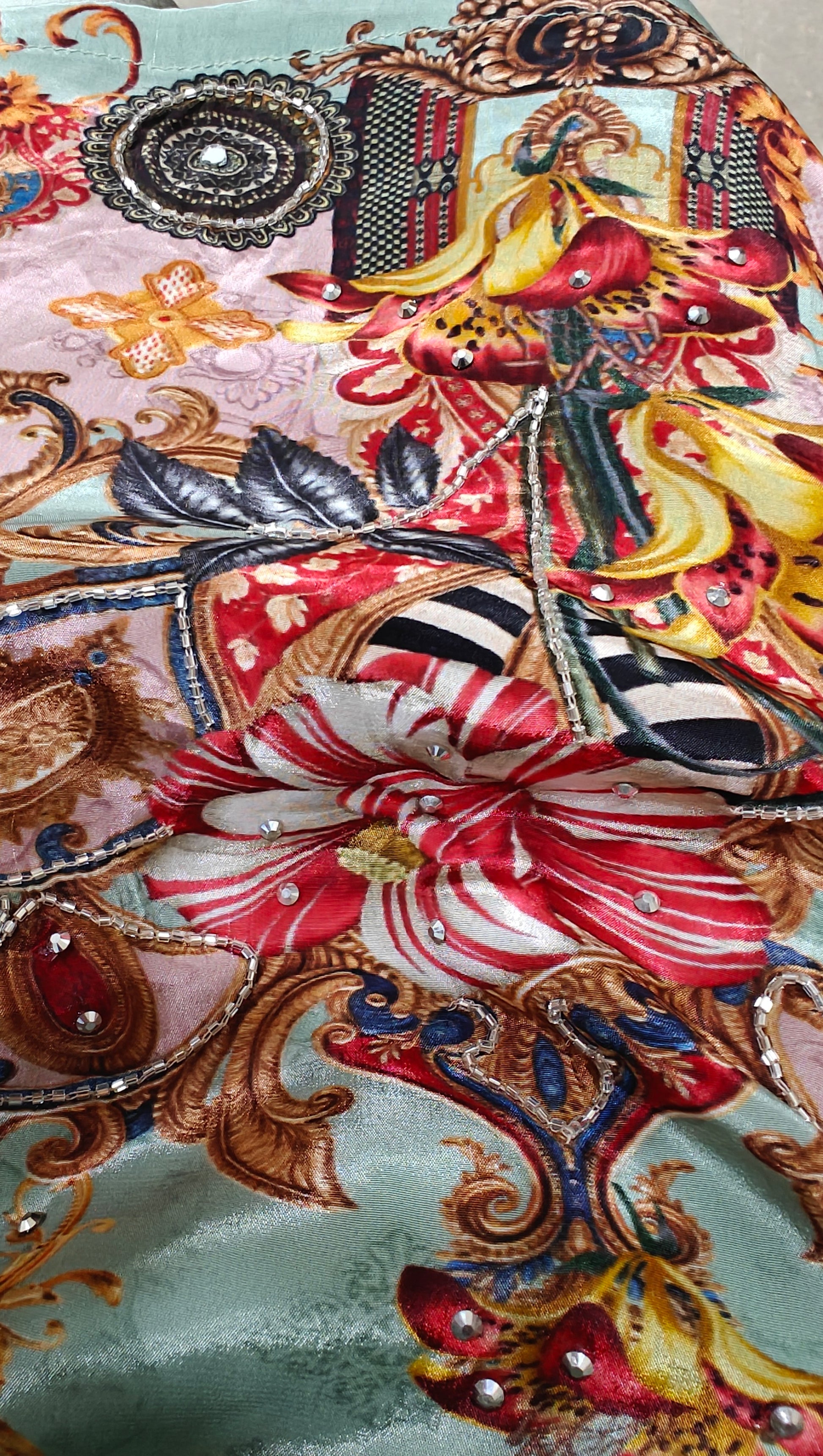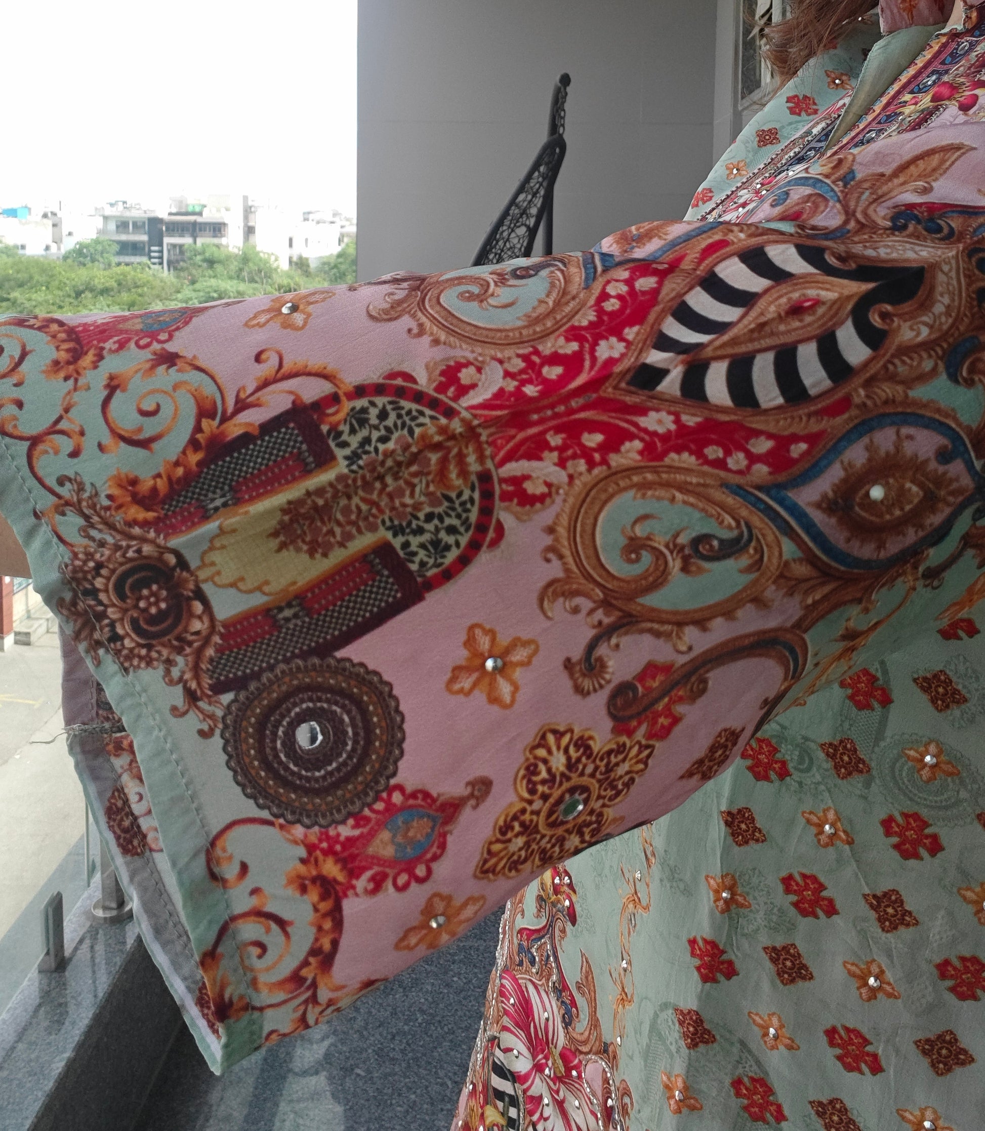 Top Color: Mint with Multi-color Floral & Ornate Digital Print